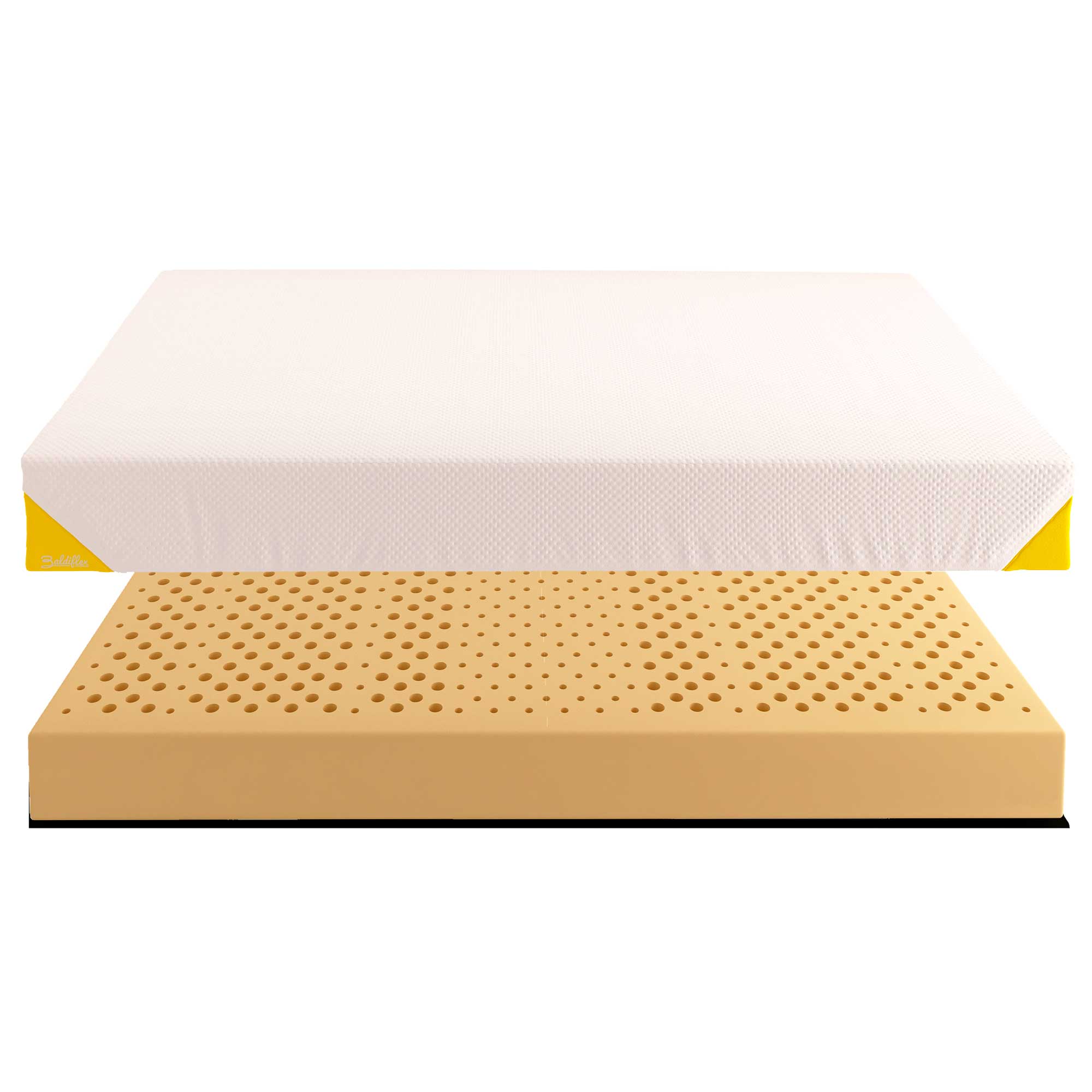 • 1er couche : plaque en latex 100% naturel moulée de 18 cm d'épaisseur (D85kg/m3) pour un soutien ergonomique