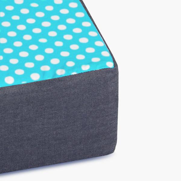 - Canapé pour chien et chat rectangulaire, avec bords, motif coloré bleu à pois blancs