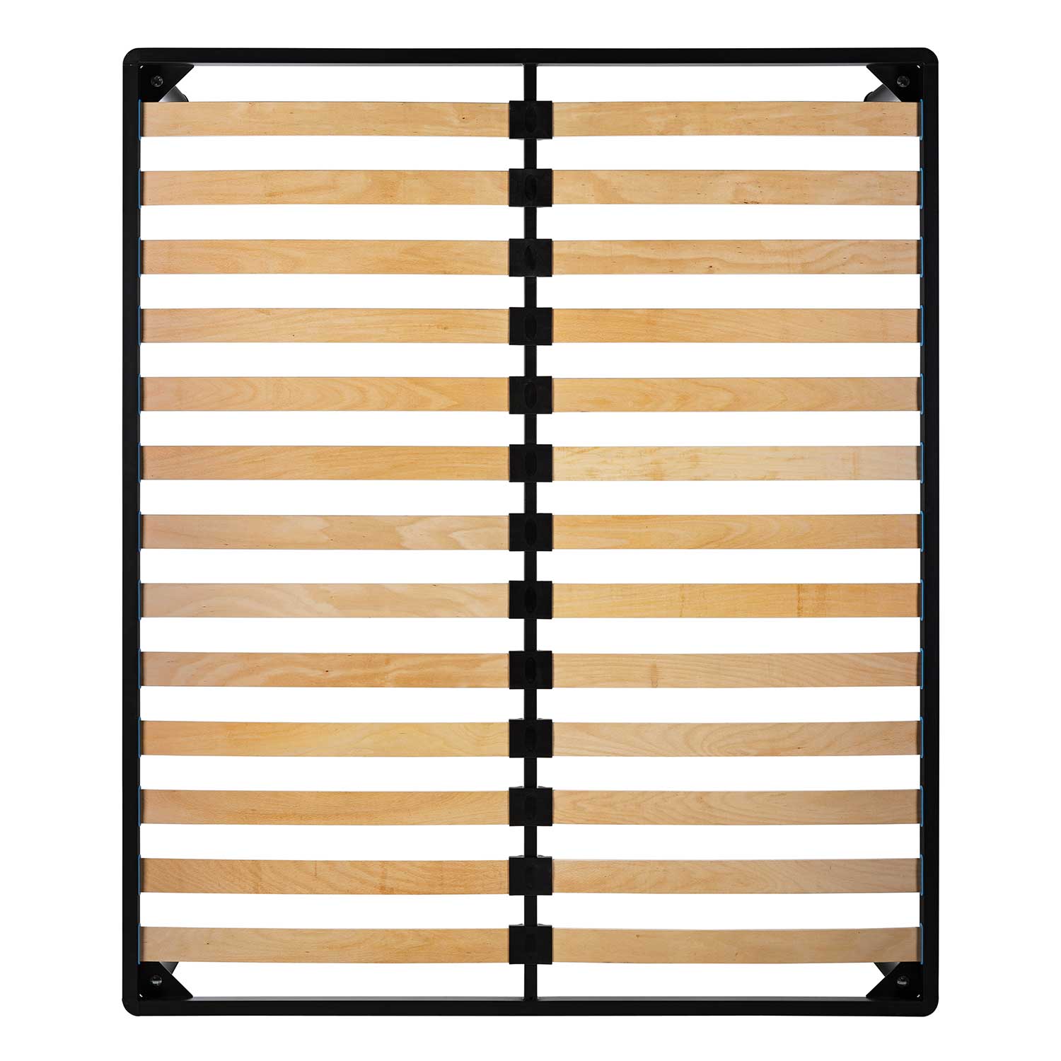 Deux traverses centrales de renfort et 13 lattes en bois de bouleau avec structure à double berceau.