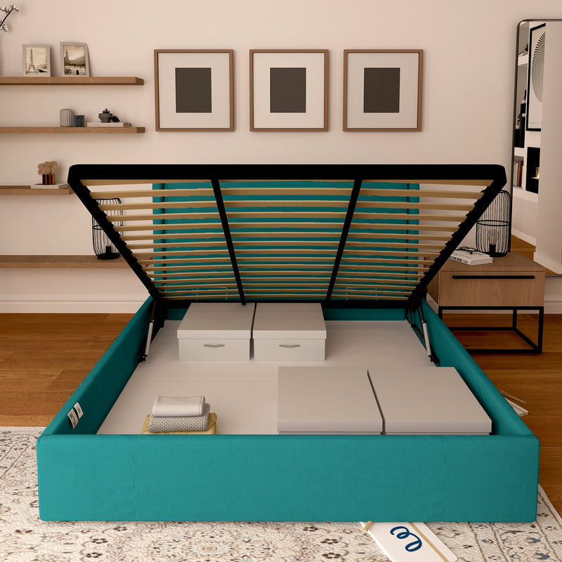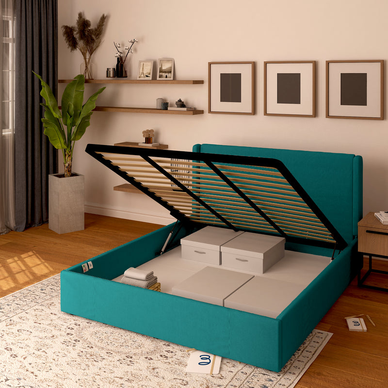 Il letto contenitore in tessuto sfoderabile Aurora permette di sfruttare lo spazio sotto al letto per riporre coperte, lenzuola, piumoni, abiti e scatole. La testata moderatamente imbottita mantiene uno spessore contenuto e non ingombra la superficie del materasso, consentendone l'utilizzo per tutta la sua lunghezza. La rete ed il materasso si sollevano agevolmente attraverso una pratica maniglia di presa posizionata sul fondo del letto. Il letto contenitore arriva a casa da montare, corredato di semplici istruzioni da seguire ma è disponibile anche il servizio di pre-montaggio per semplificare il set-up.