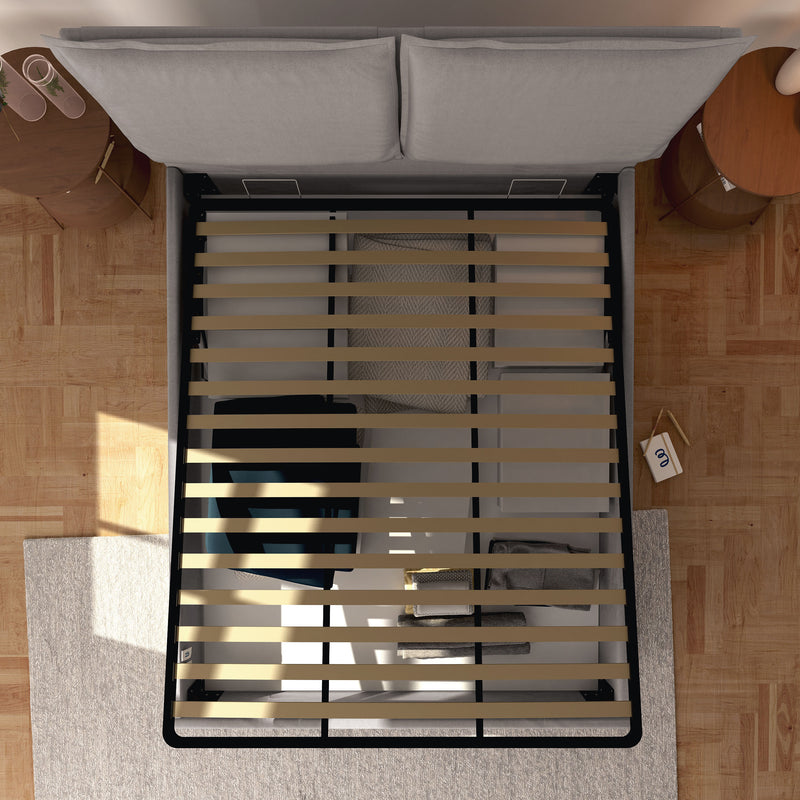 Letto contenitore matrimoniale in tessuto ignifugo sfoderabile Monet